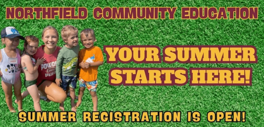 Weather CancellationsPlease use this link to view current class changes due to weather. Adult Recreation Aquatics, Martial Arts, Sports, Leagues and Strength & Fitness for adults Adult Enrichment Arts & Literature, Dog Training, Language, Personal Finance, CPR and General Interest Drivers Education Classroom sessions and Behind the Wheel driver's training for students ages 15-18 Youth Recreation Aquatics, Martial Arts, Sports and Strength & Fitness for youth Pre-K to grade 12 Youth Enrichment Arts, Music & Theater, STEM, Health & Safety and more for students in elementary, middle and high school ECFE Parent/child classes for families with children ages birth to kindergarten Early Childhood Screening Screening by an early childhood teacher or nurse, tailored for your child's age Project ABLE Programs designed for adults with differential cognitive, physical and social abilities Facilities District building and facility rental. Please review calendar before submitting your Northfield Public Schools facility rental request. Early Ventures Childcare Learning Center for infants to preschoolers, licensed by the Dept. of Human Services*Openings for the Year Before K for 2025-2026. All other classrooms are on a waitlist for 2025-2026 Hand in Hand Preschool Licensed teachers preparing children ages 3 to K entrance for continued success Kid Ventures School age enrichment and care for after school, late start and non-school days Sponsor a KidMake learning and FUN possible for all kids by donating to our scholarship fund! Your gift will directly sponsor a local child for a youth class or activity offered by Northfield Community Education printable registration form: Please print and complete this form if you are submitting payment by cash or check, in person or by mail. Starting January 5, 2026, a 3.69% processing fee will apply when you pay by credit card or ACH for Community Education programsWe understand any additional cost impacts your family budget. This change helps us keep our department sustainable while maintaining the quality programs you depend on - from recreation and childcare to preschool and drivers education.You can avoid this fee by paying with cash or check. When paying in person or by mail, please complete a printable registration form.This aligns our payment practices with the rest of the district. If you have questions, please reach out - we are here to help. Thank you for your understanding and for being a part of our community. Contact Us Call Main Office: 507.664.3649Weather Cancellations: 507.664.3659 Visit Northfield Community Education Center (NCEC)700 Lincoln ParkwayNorthfield, MN 55057 Hours Monday-Friday8:00am-4:30pm Looking to Pay a Bill? You can find your bills for childcare, preschool, facility rentals and more by logging into your account. Log In Now Northfield Public Schools Community Education often takes photographs of classes or programs to use in brochures and on the web, including social media. If you do not want pictures of you or your child used, please call our office at 507.664.3649 to 'opt out.' Northfield Public Schools Community Education does not provide accident insurance for participants in any of its programs or activities. Participants assume all inherent risk of injury resulting from their involvement in programs or activities.